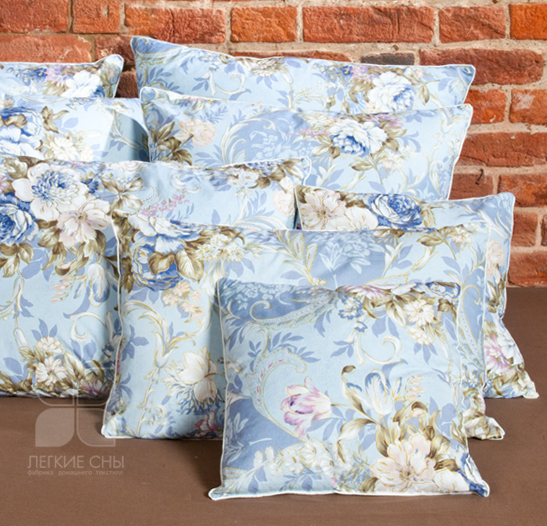 Эта экономичная по цене подушка изготовлена из полупуха 2 категории, выполнена из пуходержащего хлопкового тика с набивным цветочным рисунком, по краю подушки отделка белым кантом.
